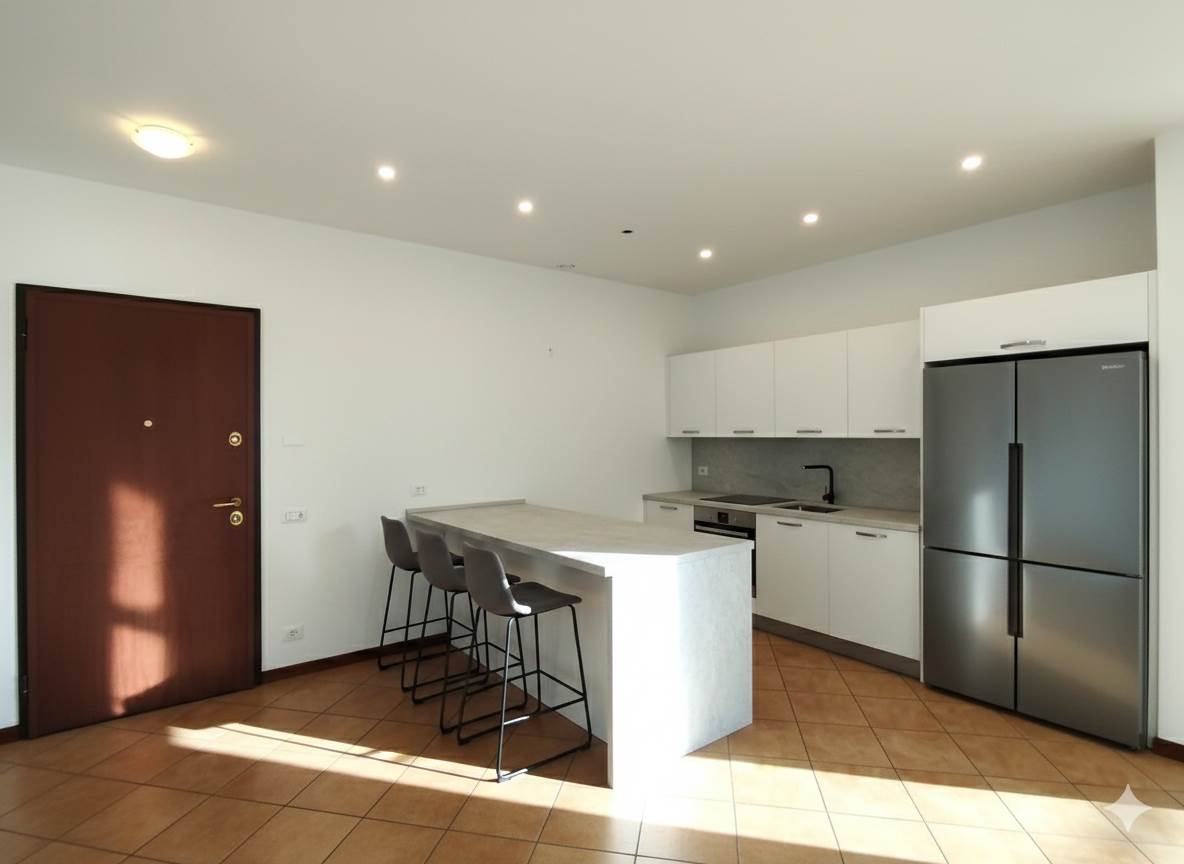 L'appartamento viene venduto con cucina. Sono pubblicati rendering con arredi a solo titolo illustrativo per migliore identificazione degli spazi.