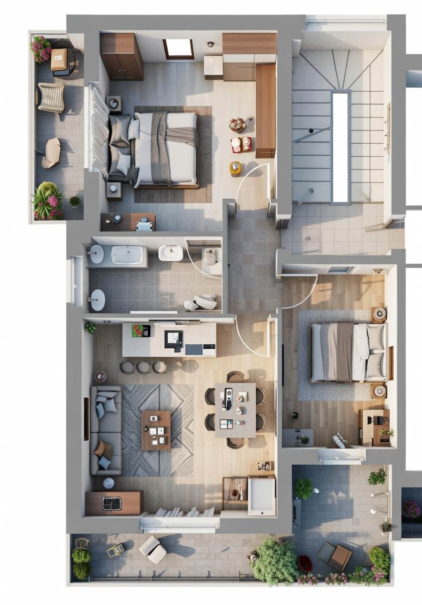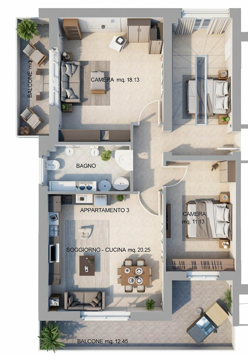 L'immobile dispone di un ampio soggiorno con cucina a vista, camera matrimoniale, cameretta, servizio , balcone, terrazzino e ampio sottotetto uso ripostiglio. L'appartamento sarà ristrutturato con materiali di alta qualità e finiture di pregio, garantendo comfort e benessere agli abitanti.